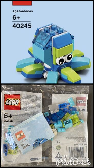 New in Sealed Poly Bag The LEGO Monthly Mini Model Build Set 40245 (July 2017) is a 49-piece polybag featuring a small, posable octopus, designed by Nina Koopmann at LinkedIn. Released as part of the monthly store build series, this set includes instructions to create a dark blue octopus with light-blue accents