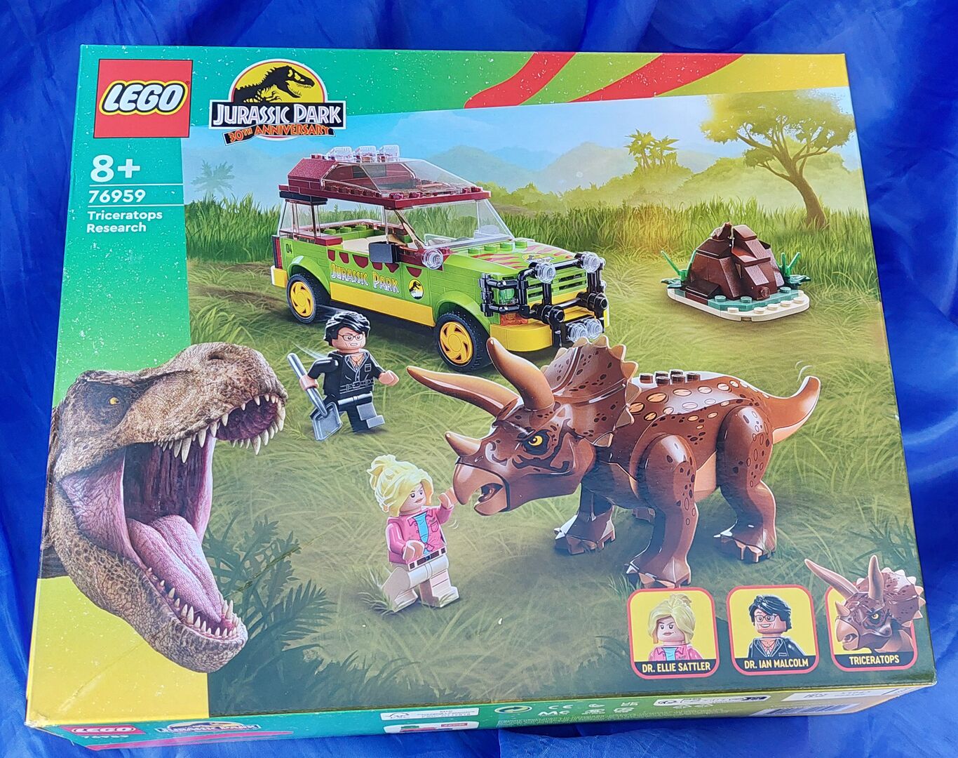 This set is brand new in box, having never been opened. This set contains a buildable, posable Triceratops figure, buildable Ford Explorer, as well as 2 minifigures: Ian Malcolm and Dr. Ellie Sattler with a shovel element to pick up the buildable dinosaur poop!!