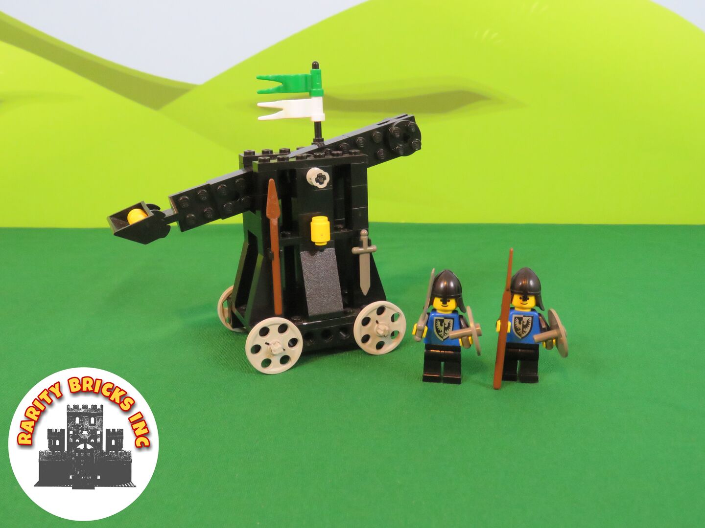 LEGO Catapult Set Number: 6030 (Released 1984) Theme: Vintage LEGO - Classic Castle Condition: - Complete - Very good condition - Damaged dark grey sword (still functional) - Minimal brick wear - No fading or discolouration. Instructions: No. Available online