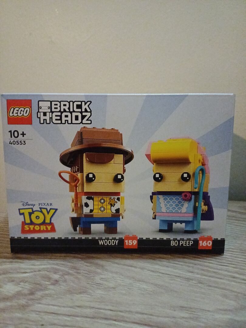 LEGO Brickheadz Toy Story Woody and Bo Peep (40553) - 301 pieces. New factory sealed. Hang out with two beloved movie characters by making these LEGO® BrickHeadz™ style buildable Disney and Pixar’s Toy Story and Toy Story 4 figures, Woody and Bo Peep (40553). It’s a clever gift idea for kids aged 10 and up, who will love authentic details such as Woody’s iconic cowboy outfit and Bo Peep’s cute hair bow and shepherd’s crook. With baseplates for display, these awesome construction toys will make a unique addition to any Toy Story fan’s collection.