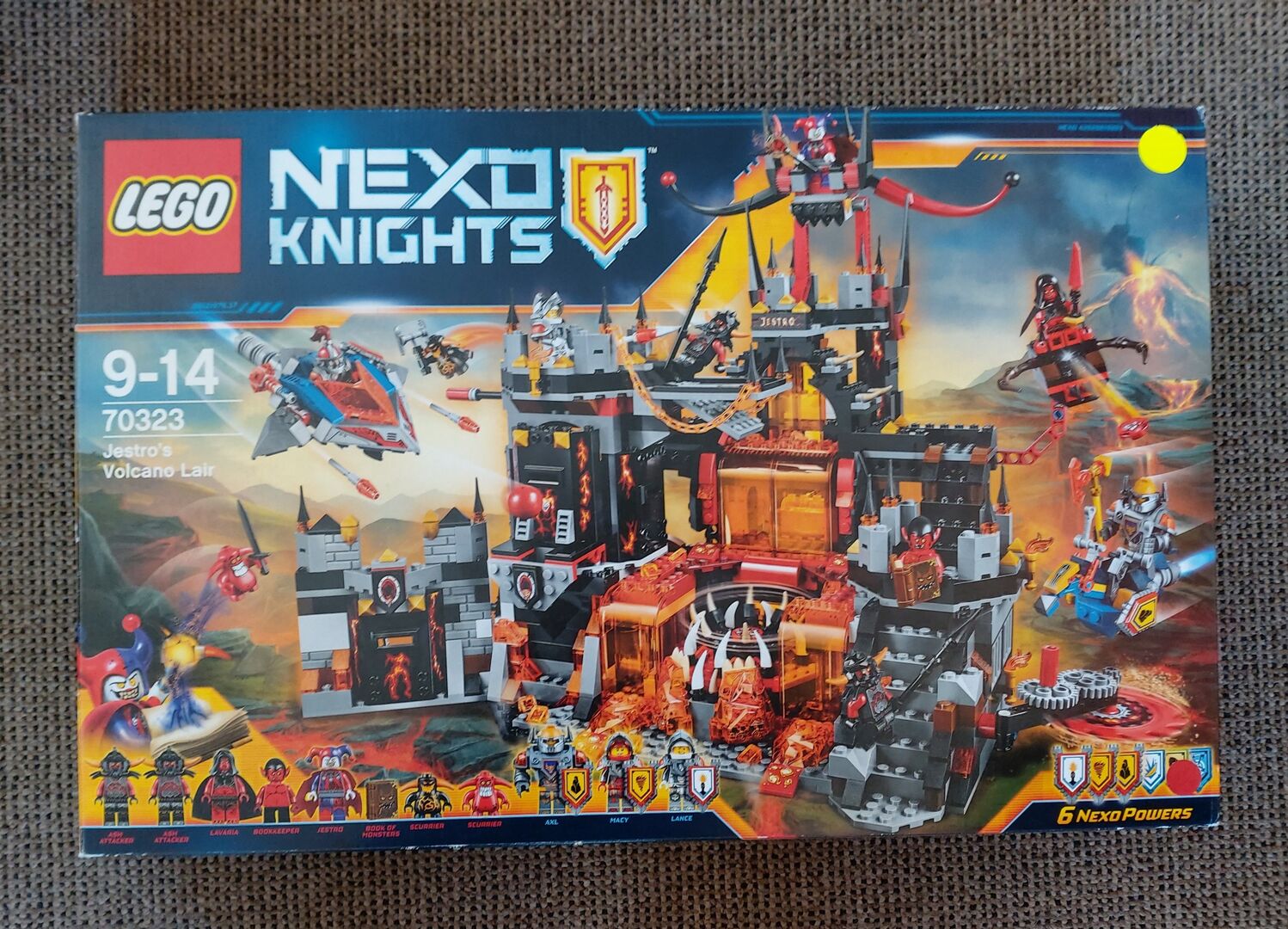 Send in the futuristic knights to steal the spell books from Jestro's Volcano Lair, featuring a trapdoor, spinning lava mouth, movable saw blade on the stairwell, detachable throne, library with exploding wall function, and a prison cell with ejecting wall. Turn the lair around to reveal the living quarters with a bedroom, bathroom, kitchen, prison and a weapon room. Also comes with Macy's Mace Slammer, Axl's Hover Horse and 6 scannable shields. Includes 8 minifigures and 2 Scurriers. Includes 10 minifigures: Jestro, Bookkeeper, Lavaria, 2 Ash Attackers, 2 Scurriers, Axl, Macy Halbert and Lance Richmond. Features Jestro's Volcano Lair, Macy's Mace Slammer and Axl's Hover Horse. Volcano Lair features a detachable throne, a seated disc-shooter weapon, trapdoor function that leads into a spinning lava mouth, stairwell with spinning saw blade to stop the knights climbing the stairs, library with 2 spell books, prison cell with collapsible wall, weapon chamber, treasure room, bedroom with bed, bathroom with bathtub, and a kitchen with a chicken and a banana. Mace Slammer features a ball shooter and 2 flick missiles. Release the Volcano Lair's trapdoor, and turn the handle to plunge the victim into the jaw of the lava spinning mouth. Spin the cog handle to set the saw blade spinning and stop the knights from climbing the stairwell. Pull the prison cell's lever to topple the wall. Fire Macy's Mace Slammer ball shooter and flick missiles at the library's shield-shaped element to create an explosion effect and retrieve the spell books. Also includes the Book of Destruction and Book of Revenge. Weapons include Jestro's 2 magic wands, Axl's Axe, Macy's Photon Mace, Lance's NEXO Lance, the Ash Attacker's 2 spears, Lavaria's 2 swords, the Scurrier's axe, a sword and 2 buildable weapons in the weapon chamber. Accessory elements include Axl's helmet and shield, Macy's helmet, shield and NEXO armor, Lance's helmet, shield and NEXO armor, arat, frog, chicken, spider, banana, 2 gold goblets, and a cauldron. This set offers an age-appropriate building experience for ages 9-14. Download the free LEGO® NEXO KNIGHTS™: MERLOK 2.0 app to your smartphone or tablet. Ask your parents' or guardians' permission before going online. Scan shields for each of the 6 NEXO Powers (Flash Cannon, Fire Tornado, Wall Block, Banana Bomb, Jungle Dragon and Whirl Wind) and power up in the LEGO® NEXO KNIGHTS™ game! Watch all your favorite NEXO KNIGHTS™ characters on Cartoon Network. Jestro's Volcano Lair measures over 12” (33cm) high, 16” (41cm) wide and 11” (28cm) deep. Macy's Mace Slammer measures over 4” (12cm) high, 6” (17cm) long and 4” (12cm) wide. Axl's Hover Horse measures over 1” (4cm) high, 3” (9cm) long and 1” (5cm) wide.