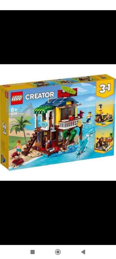 564-piece LEGO® Creator 3-in-1 toy offers children aged 8 and over a challenging building experience. The models make a great birthday or Christmas present. The LEGO® beach house has the following dimensions: Height: 19 cm| Width: 17 cm, Depth: 15 cm Contains 564 pieces.''