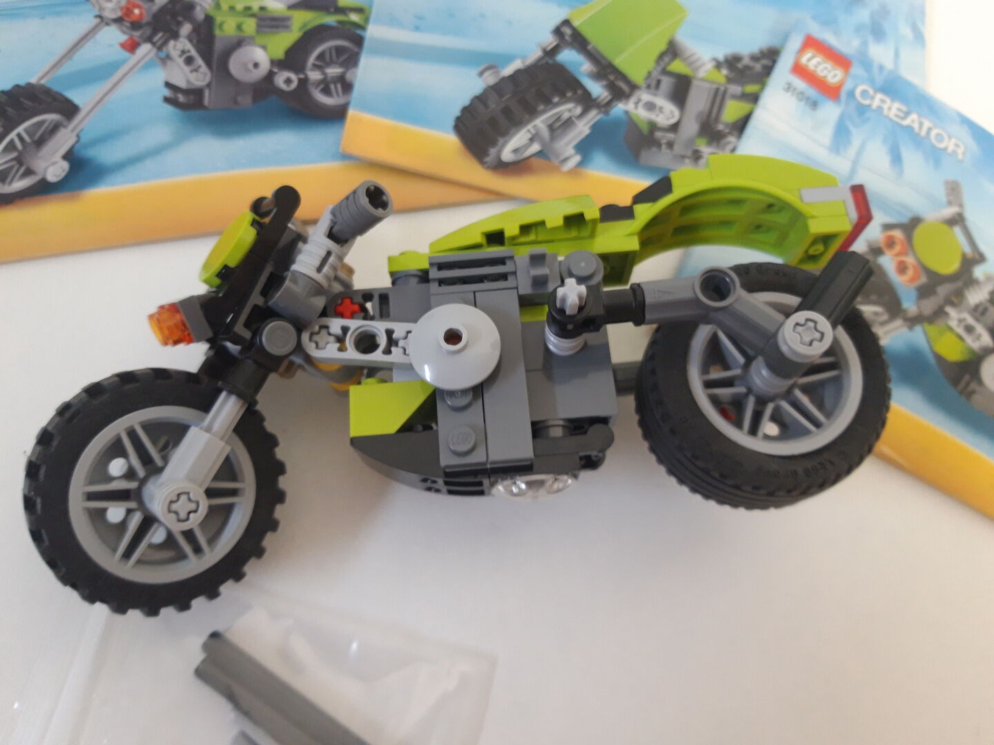 LEGO Creatir 3 in 1 Highway Cruiser (31018) A brilliant Lego set from 2014 that has since been retired. The set is number 31018 and is the Highway Cruiser from the Creator 3 in 1 Range. It is a brilliant set that is 100% Complete and comes with its instruction books. The set is a really funky set that can be built as three different styles of motorbikes. The set is in excellent condition. This is your change to grab a bargain. It is a brilliant set that guarantees hours of fun and would add to any Lego collection. Sadly no longer has its original box but the set will be carefully broken down and bagged up as per the instructions. Any questions don't hesitate to ask.