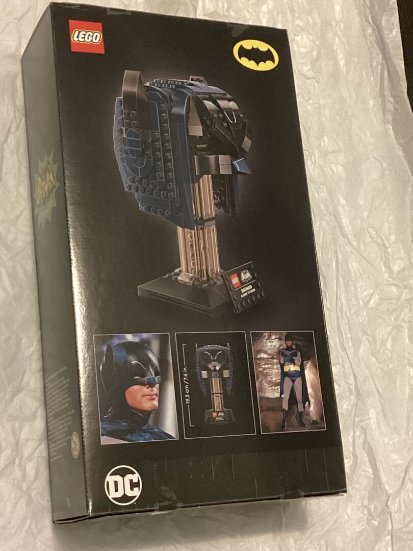 LEGO brick recreation of the distinctive cowl worn by the famous TV incarnation of the Caped Crusader™. Includes an an information plaque attached to the sturdy, removable base Brand new, sealed in box