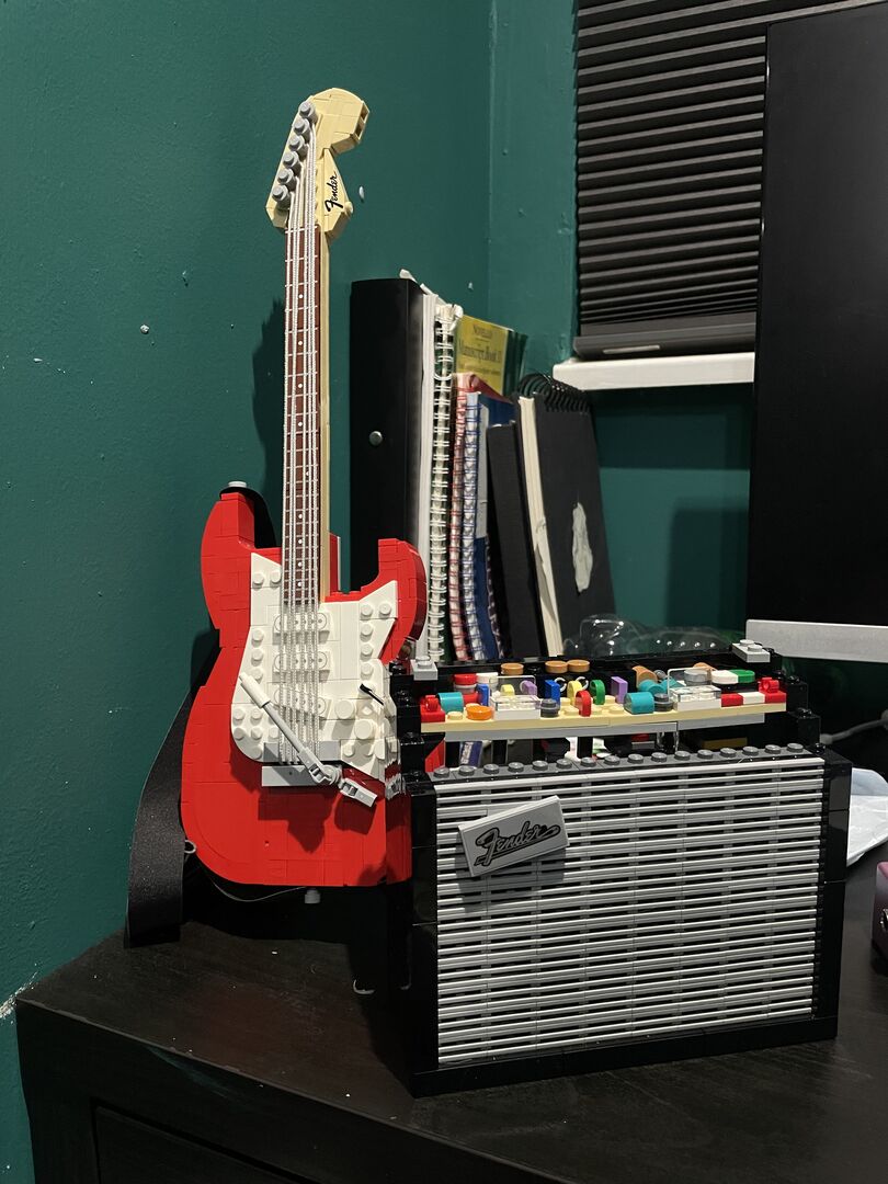 Seller: Joelle Flag GB Lego Ideas Fender Stratocaster Guitar and Amp