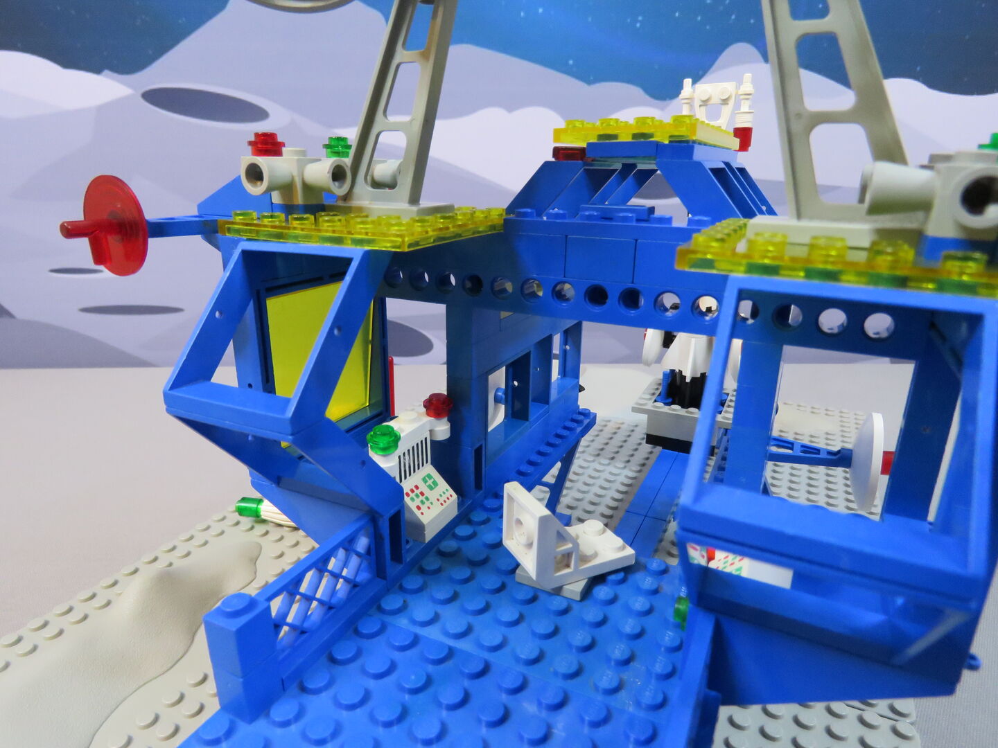 LEGO Inter-Galactic Command Base Set Number: 6971 (Released 1984) Theme: Vintage LEGO - Classic Space Condition:  - Good condition with minimal wear or fading (torso and brick printing). - Missing pieces:    - 1x  Blue Hinge Plate 2 x 4 (3149) substituted with Black Hinge Plate 2 x 4 (3149).    - 2x  Light Gray Antenna 4H - Round Top (3957) substituted with 2x Light Bluish Grey Antenna 4H - Flat Top (3957b).    - 1x White Slope 45 2 x 2 with Computer Screen and Right Side Buttons Pattern (3039p23) substituted with White Slope 45 2 x 2 with Computer Panel Pattern (3039p24).    - 1x Trans-Yellow Glass for Window 1 x 6 x 5 (3762) not replaced. Instructions: No (Available online)