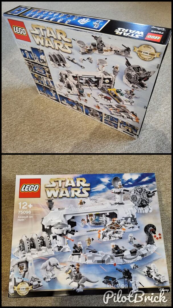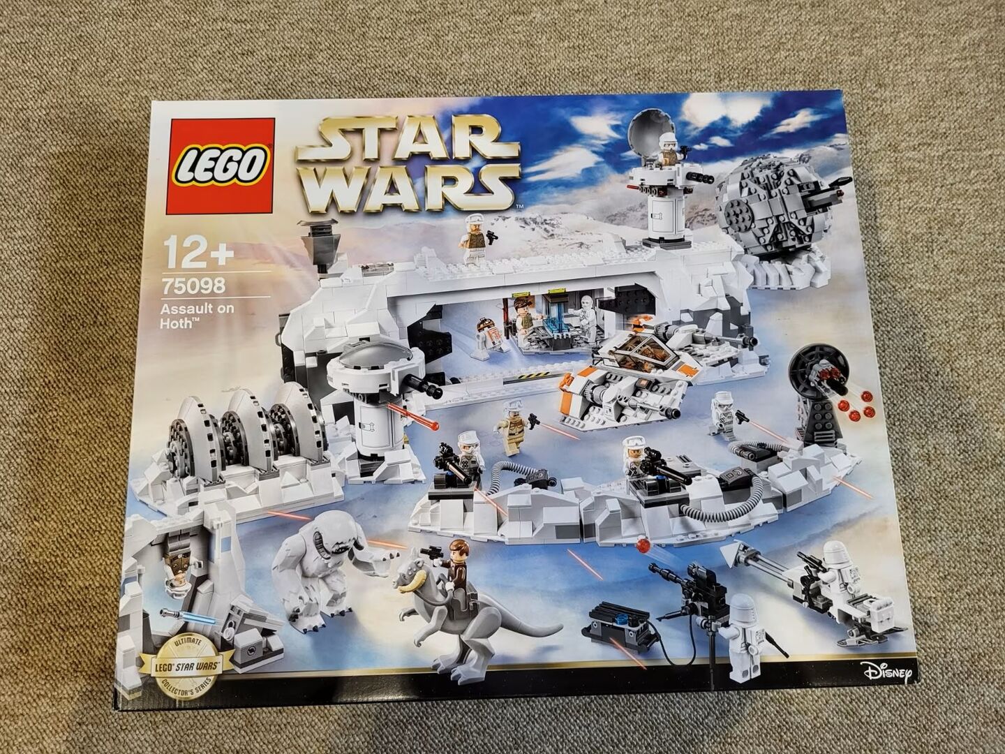 LEGO Star Wars 75098 Assault on Hoth (NEW and OVP) - I am selling this new, unopened and originally packed LEGO Star Wars 75098 Assault on Hoth set from my Lego collection. It is absolutely as good as new and in TOP condition. The safety stickers etc. are all still undamaged. Further information via PN Pick up possible Payment by classifieds, PayPal, normal bank transfer or cash on collection Shipping possible for an extra charge More pictures on request. Product details: Get ready for epic battles on the ice planet Hoth like never before! This fantastic LEGO® replica of the Rebel Echo Base from Star Wars: Episode V - The Empire Strikes Back includes all the details you need to stage your own epic battles on the ice planet. Embark on scouting missions on the Snowspeeder equipped with spring-loaded twin shooters. Then, when you spot the enemy speeder bike, return to Echo Base and help Luke, Han and the other heroic rebels lock the blast doors, ready the laser cannons, man the turrets with the spring-loaded twin shooters and activate the ion cannon, which is also equipped with 2 spring-loaded shooters! This fantastic model has numerous other features. These include a workshop area with crane, a control room, a power generator with blasting function, a rotating communications dish, a scout post with twin shooters and a tauntaun with its own stable. There's even a wampa cave (with wampa) as an escape route for Luke! Thanks to the modular design of this amazingly detailed set, you can also customize the rebel base to your own liking. Get ready for the ultimate action with LEGO Star Wars! Includes 14 minifigures and matching equipment: Luke Skywalker, Han Solo, Toryn Farr, a Rebel officer, Wes Janson, Wedge Antilles, K-3PO, 5 Rebel troopers and 2 Snowtroopers, plus an R3-A2, a Tauntaun and a Wampa. Includes 14 minifigures with matching equipment: Luke Skywalker, Han Solo, Toryn Farr, a Rebel officer, Wes Janson, Wedge Antilles, K-3PO, 5 Rebel troopers and 2 Snowtroopers, plus an R3-A2, a Tauntaun and a Wampa. Includes a Rebel base with wall and trench modules, a snowspeeder and a speeder bike. The wall module features sliding blast doors, a workshop area with crane, a control room, a power generator with blast function, an ion cannon with spring-loaded twin shooters, a laser turret with spring-loaded shooters and space for a minifigure, a scout post with twin shooters, a tauntaun stable and a wampa cave. The trench module is equipped with heavy blasters, a laser turret with spring-loaded twin shooters and space for a minifigure, and a laser cannon with rapid-fire shooter. The snowspeeder has an opening cockpit, extendable acceleration flaps and 2 spring-loaded shooters. Equipment: Luke's lightsaber, 7 blaster pistols, 2 blaster rifles and 2 blasters Accessories: 7 Hoth rebel helmets, 2 snowtrooper helmets and the pilot helmets for Wes and Wedge. Man the turrets and get ready for action! Jump onto the snowspeeder and track down the enemy. Keep an eye out for the Imperial forces at the scout post. Close the blast doors and prepare for a fierce battle! Supply the Tauntaun. Raise the snowspeeder to repair it. Use the devastating ion cannon to take out the starships in orbit! Will Luke manage to escape the furious Wampa? The Snowspeeder is 5 cm high, 18 cm long and 17 cm wide. The speeder bike is 3 cm high, 13 cm long and 4 cm wide. The power generator is 8 cm high, 16 cm wide and 13 cm deep.