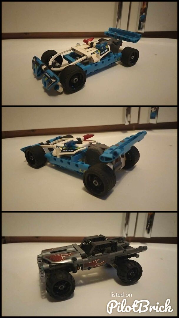 Seller: Vikki Neighbour Flag GB Lego Technic 42090 GETAWAY TRUCK & 42091 POLICE PERSUIT pull back cars!