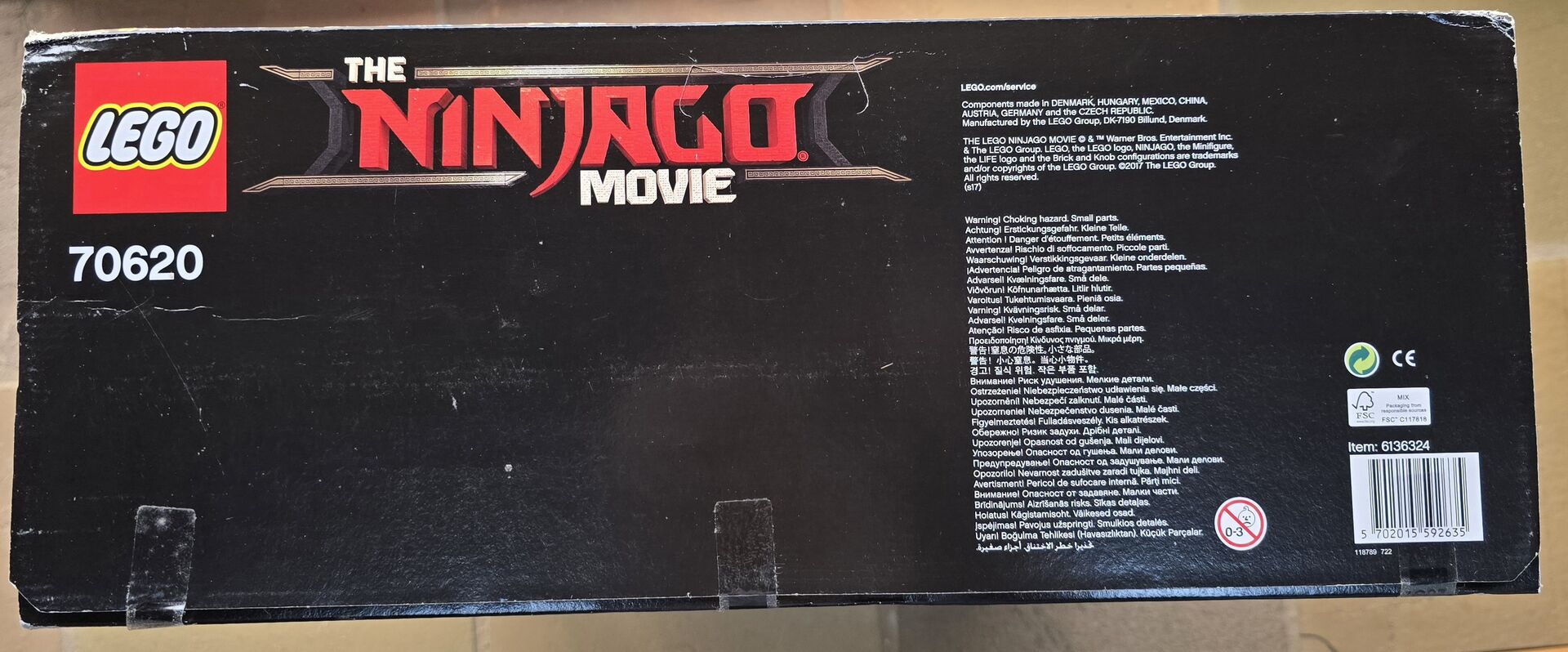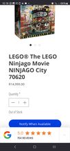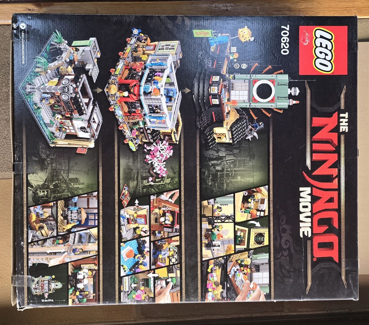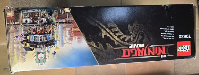 NIB. Seal is broken. Never used. Slight damage on box. LEGO Ninjago CITY Set Description: Enjoy endless role-play fun in NINJAGO® City, a hugely-detailed 3-level model connected by a sliding elevator. Level 1 features a traditional fish market, house, a bridge over a stream, and a fishing boat. The second level has a modern fashion store, comic book store, crab restaurant with ‘crab-grilling’ function and cash-dispensing ATM. The vertical city is topped off with Lloyd Garmadon and Misako’s apartment, a rooftop sushi bar with sushi conveyor belt, and a radio tower. This action-packed THE LEGO® NINJAGO MOVIE™ set also includes 16 minifigures and Sweep the maintenance robot. Includes 16 minifigures: Jay, Kai and Lloyd Garmadon (each with new-for-August-2017 high school outfit decoration), Green Ninja Suit, Misako, Jamanakai Villager, Sally, Ivy Walker, Konrad, Severin Black, Tommy, Guy, Juno, Mother Doomsday, Shark Army Gunner and Officer Noonan, plus Sweep the maintenance robot. Features a 3-level model (each level lifts off for easy play) connected by a sliding elevator, plus a traditional fishing boat. Level 1 features a bridge, sewer outlet, stream with translucent-blue and translucent-green water elements, sliding elevator with room for a minifigure, traditional fish market with fish and crab elements, house with dining room and bedroom with sliding screen doors and foldout ‘solar panels’, Sweep the maintenance robot's service station with assorted tool elements, and a taxi stand with telephone element. Level 2 features a modern fashion store with 2 mannequins and assorted NINJAGO® product elements, a construction site with a bonsai tree, a comic book store with brick-built sign, cashier desk, comic book stand with assorted elements including collectible NINJAGO training cards, a crab restaurant with brick-built crab entrance sign and oven with ‘crab-grilling’ function, a cash-dispensing ATM, 15 bank note elements (ATM can dispense up to 13), and a movie poster display stand with 4 interchangeable movie poster elements! Level 3 features a radio tower, modern rooftop sushi bar with sushi conveyor belt function and brick-built food, bathroom with sliding door, and brick-built puffer fish and squid sculptures, Lloyd Garmadon and Misako's apartment with an opening window, bunk bed, kitchen unit and attic space for the Green Ninja Suit minifigure. Ninjago City measures over 24" (63cm) high, 12" (31cm) wide and 16" (42cm) deep!