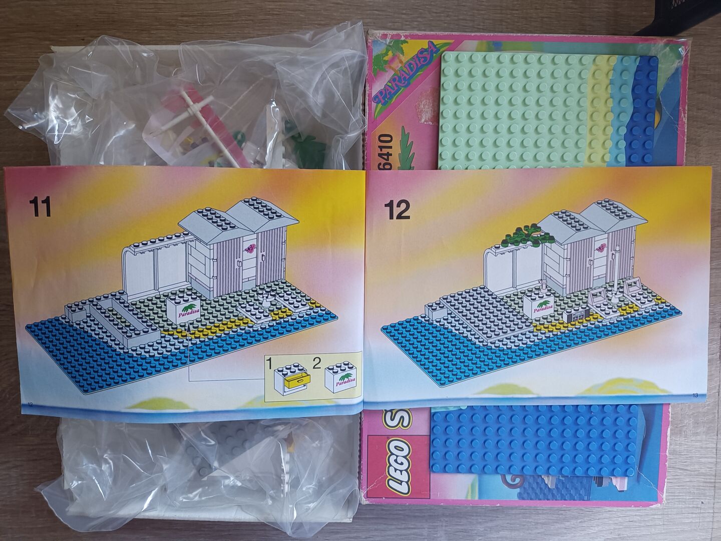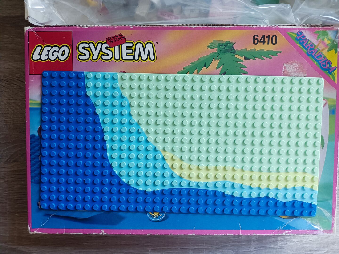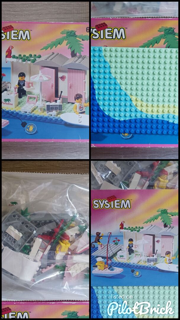 The 1990s set is in excellent condition and is a lot of fun to put together. The parrot, monkey, fishing rod, life jackets, windsurfer speed boat, and boombox really enhance the set. The set is complete with all mini figures, original box, all pieces, and instructions. A few pieces are assembled and stickers have already been placed.