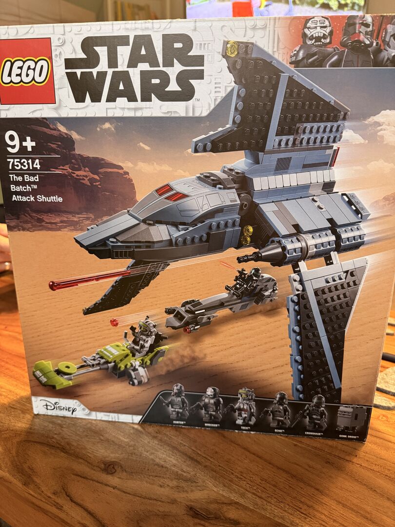 Attack shuttle from The Bad Batch™️ Condition: Built once, unplayed. Scope of delivery: Main model (shuttle) + 2 speeder bikes, original packaging (OVP) & building instructions. Important note: The set is sold without minifigures. Description The set was carefully built once and has been protected on the shelf ever since. It is ideal for collectors who are looking for the ship as a display model or who already own their own Clone Unit 99. The bricks are in mint condition. The original packaging has been carefully opened and the instructions are complete.