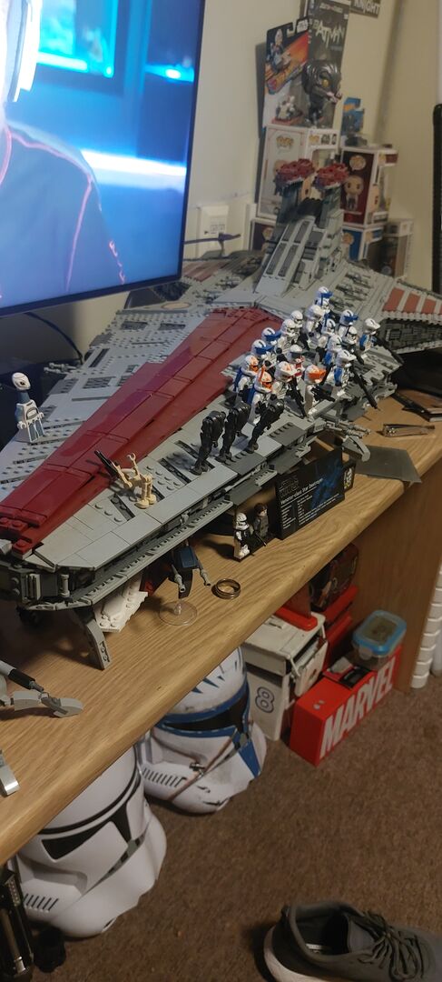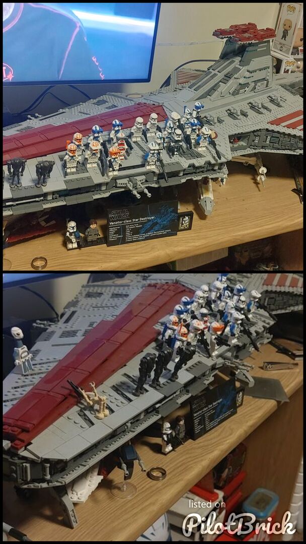 Ucs venator with original figures also including all the clone troopers imaged on top of it