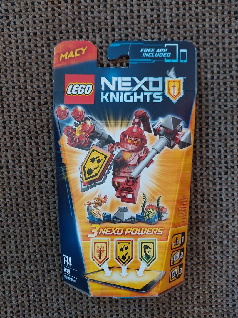 Ultimate LEGO® NEXO KNIGHTS™ sets feature never-before-seen futuristic action minifigures with ultimate battle gear. This tomboy princess is ready to fight, with a mighty mace, axe and vines to tangle the enemy and throw them in the air. Featuring 3 scannable shields for NEXO Powers that provide unique battle skills in the digital game. Includes an Ultimate Macy minifigure. Ultimate Macy merges live-action play with 3 scannable shields to obtain unique NEXO Powers for digital gaming. Weapons include a Phoenix axe, mace and a 6-stud shooter with 12 extra studs. Accessory elements include a storage chest for extra studs, 2 vines, visor, helmet and a showcase stand. Swing the Phoenix axe or whip the enemy into defeat with vines. Includes an Ultimate Macy minifigure. Stands over 2” (7cm) tall.